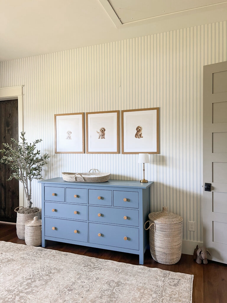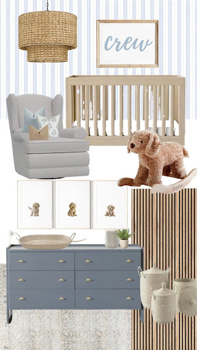 When our son, Crew, was born, I knew I wanted to do something fun and a little different with his nursery. We decided to turn our old playroom into his space, and once I landed on a dog theme, everything else fell into place. We love our two goldendoodles so much, so puppies felt like the perfect (and cutest) theme for a baby boy nursery. I also loved how a blue and neutral color palette tied everything together in a calm but playful way.