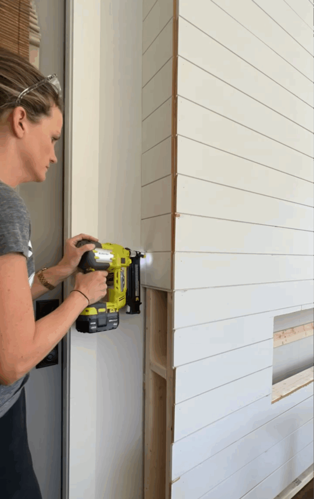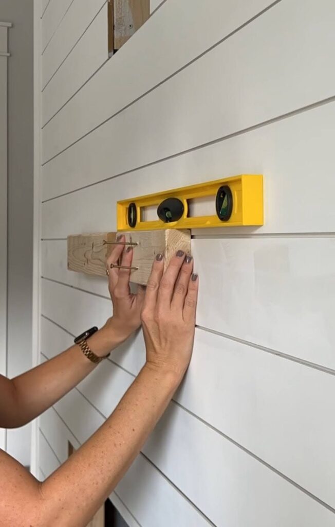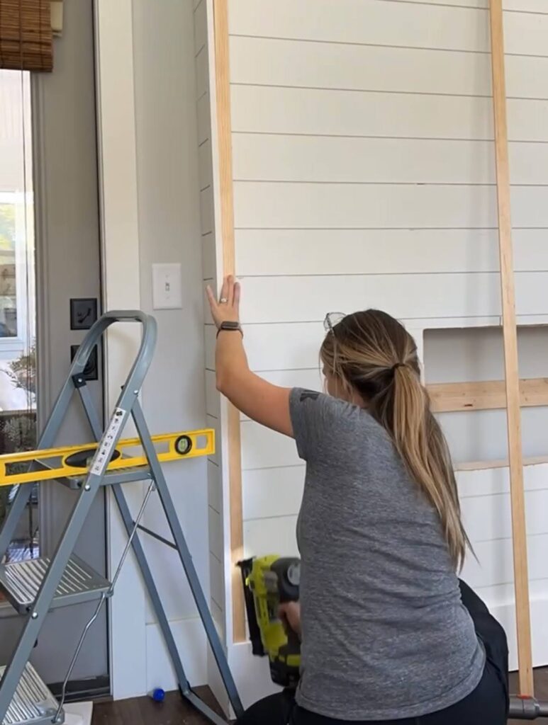 We used 8’ tongue-and-groove shiplap boards from @officialmetrie, and they were incredibly easy to work with.