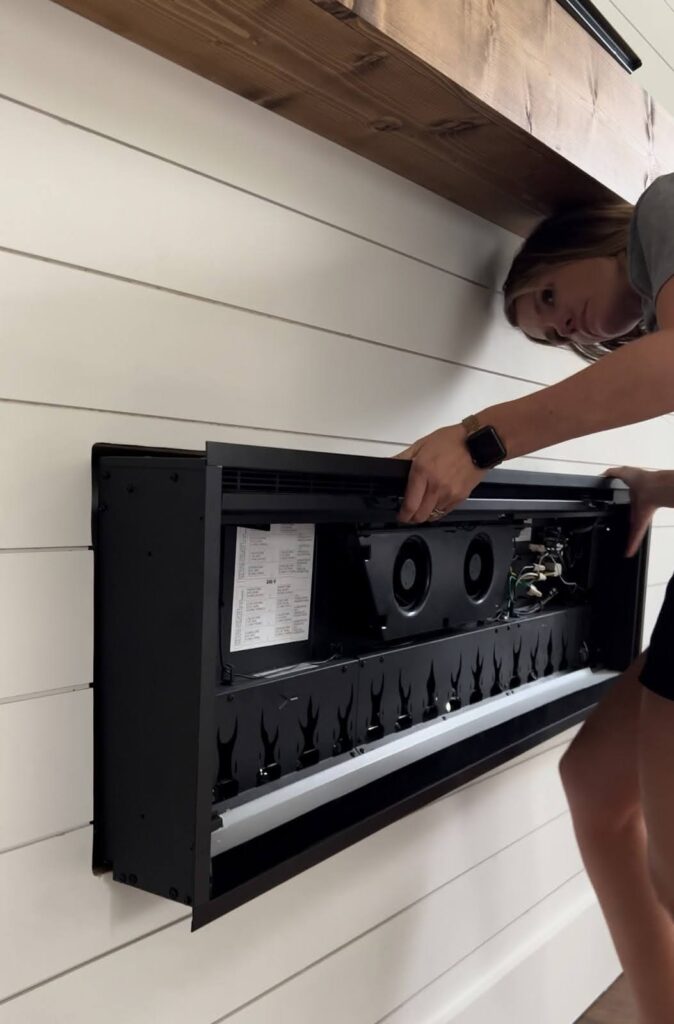 This part was the easiest! We used the Dimplex IgniteXL 50-inch electric fireplace, but they have multiple size options.