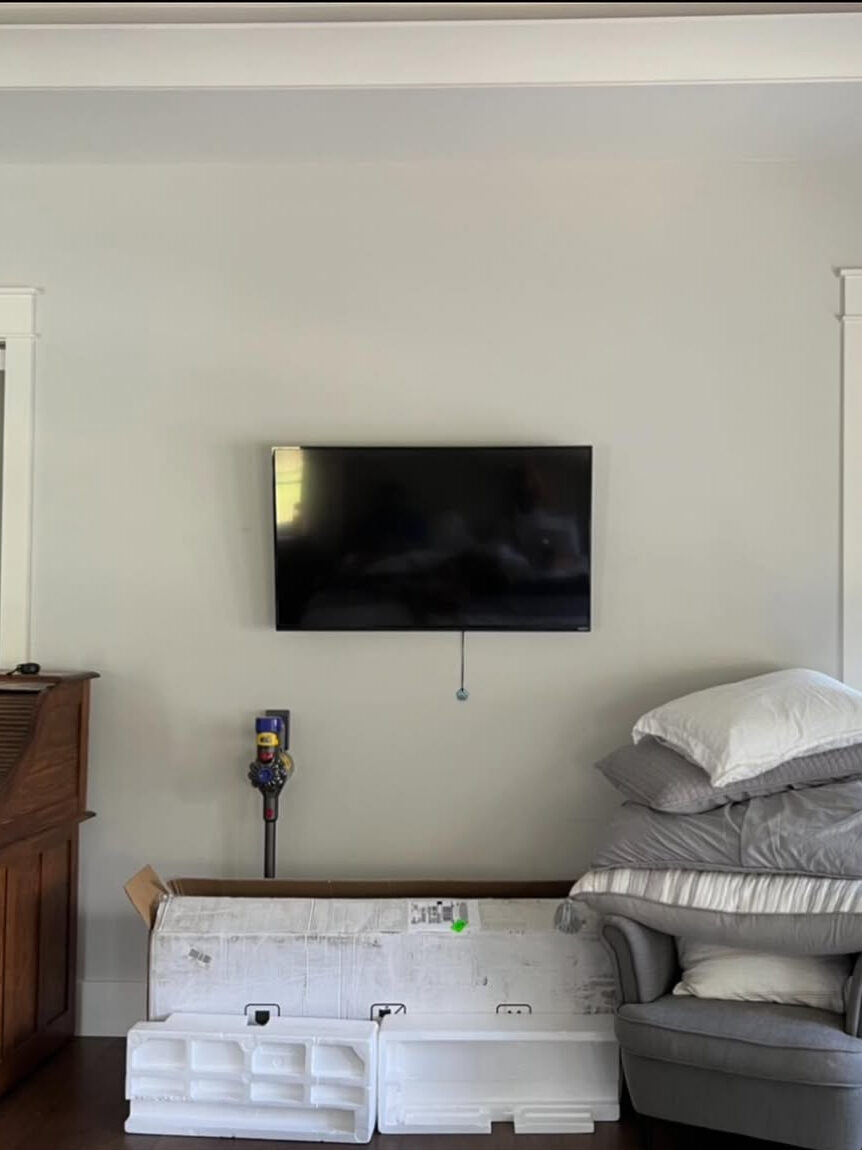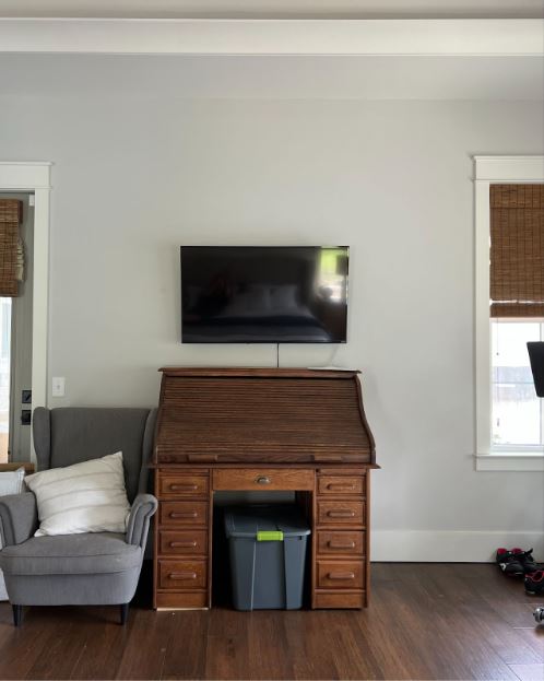 Once we moved in, we mounted the TV on the wall and hoped that one day we’d finally add the fireplace we dreamed of. Every day, I stared at this wall and hated how plain it looked. It added nothing to the aesthetic or coziness of our room.