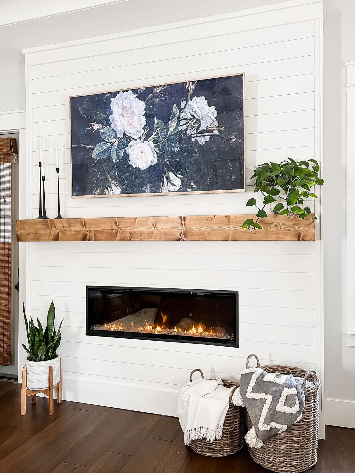 I am so excited about this post because this is truly one of my all-time favorite DIY projects! Today, I’m sharing all of the details of our DIY shiplap electric fireplace and mantel, plus a step-by-step tutorial so you can build one yourself. This is a completely in-depth guide of how I transformed our boring bedroom TV wall into a warm, cozy, Pinterest-worthy statement piece.